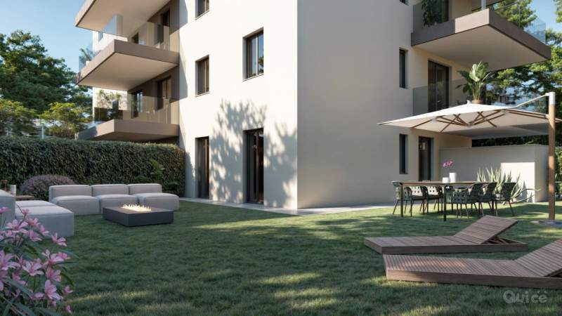 I dettagli distintivi includono pavimenti in gres porcellanato che aggiungono calore agli spazi interni e impianti moderni che assicurano efficienza energetica e massimo comfort.