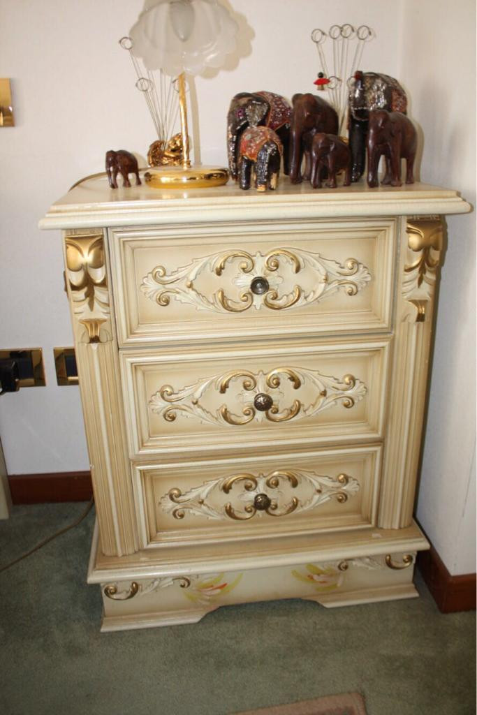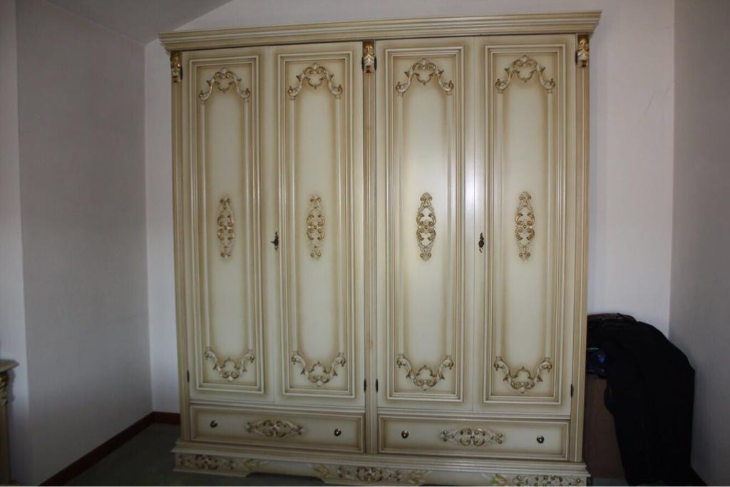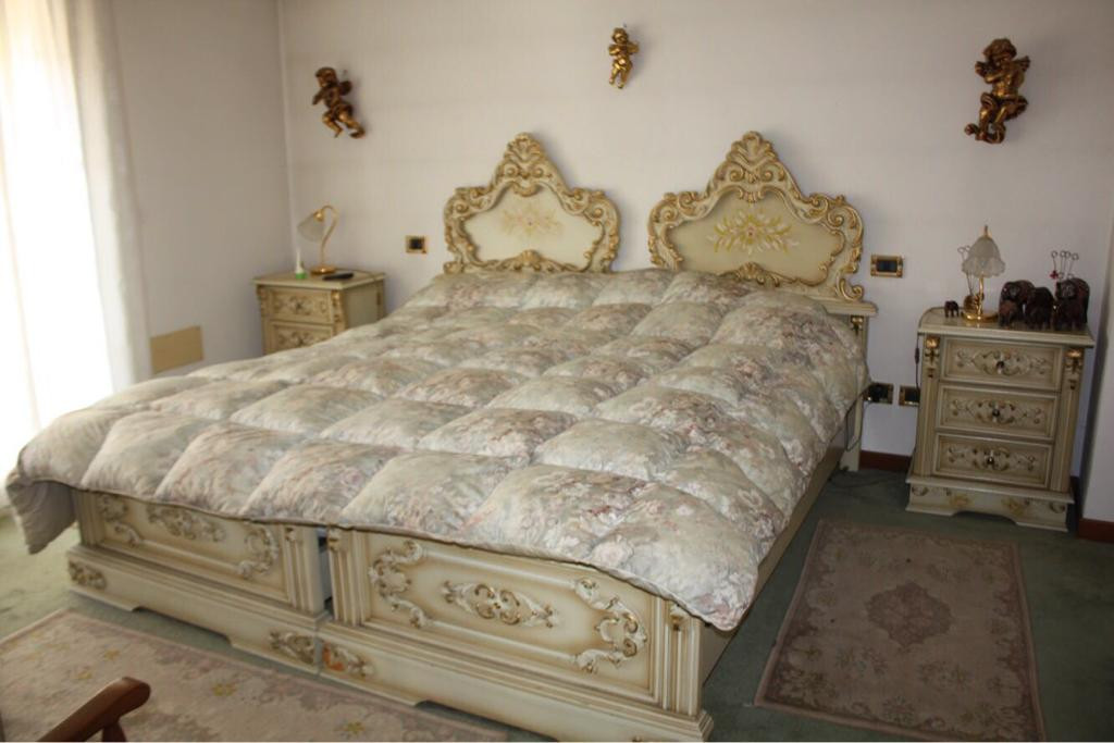 Vendo camera stile veneziano composta da letto matrimoniale divisibile,due comodini,armadio a quattro ante,como’ e specchio