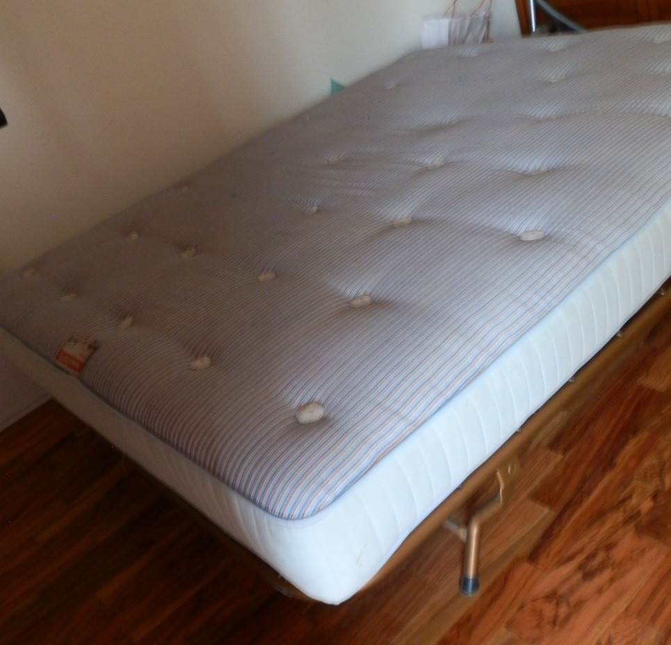 Per necessita’ di liberare spazio, vendo rete in metallo e materasso mis. 150X190 insiema a 15 euro.