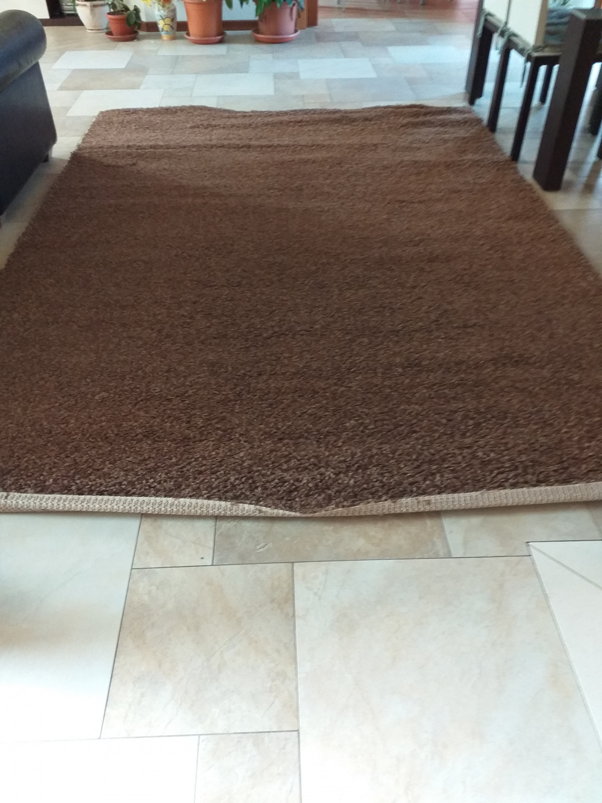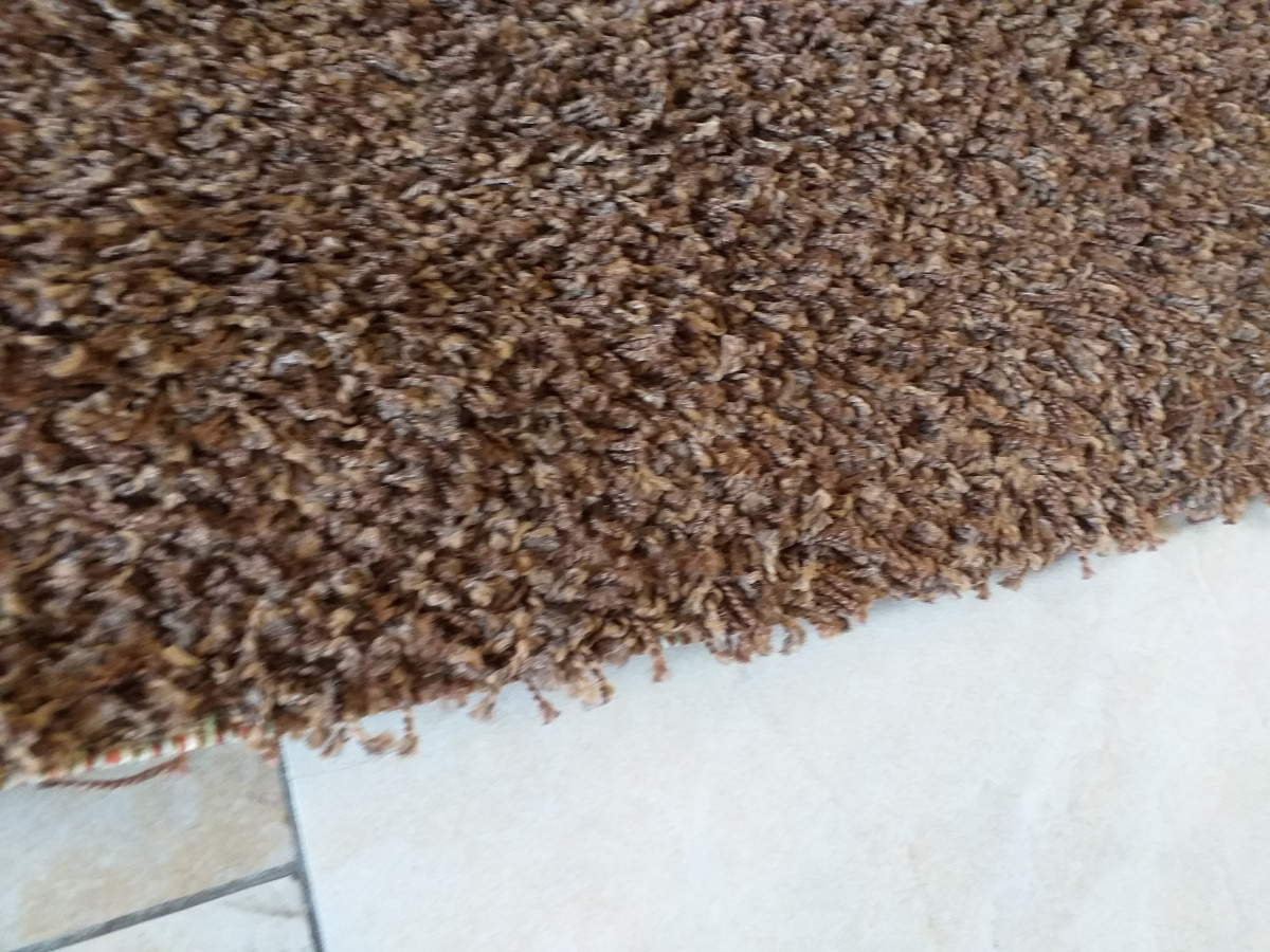 Tappeto in lana, a pelo corto, di color marrone.