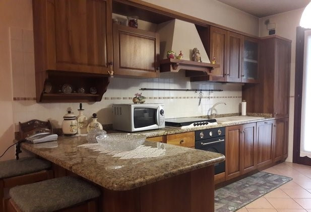 Appartamento al piano terra in palazzina di quattro unità con ingresso, soggiorno-cucina, due camere e bagno. Al piano interrato due posti in garage chiuso, lavanderia e ampia taverna con angolo cottura e caminetto, il tutto collegato comodamente da scala privata interna. Finiture di ottimo livello. Spese condominiali di € 500 annuali. Scoperto privato su tre lati e pompeiana. Prezzo di mercato.