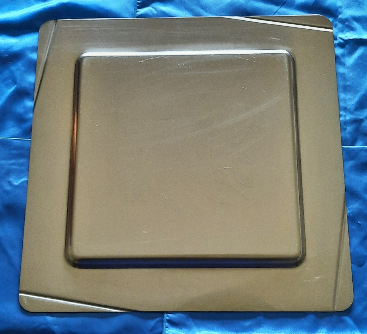 Vendo vassoio in acciaio VEMI serigrafato con disegno floreale. Usato buono. Mis. 37 x 37 cm.