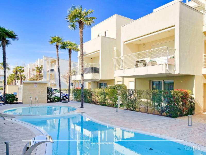 Appartamento al piano terra nel Wave Resort Village, ideale per famiglie, a Lido di Jesolo, a pochi passi dalla spiaggia di Piazza Nember. L’appartamento comprende soggiorno con angolo cottura attrezzato, camera matrimoniale, seconda camera con due letti singoli e bagno con box doccia. Dotato di aria condizionata, TV, lavatrice, lavastoviglie e posto auto coperto. Ampio giardino arredato con vista sulla piscina. Il resort offre piscina riscaldata all'aperto e spazi verdi ben curati.
