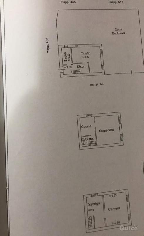 L'immobile si presenta così composto: entrando ci troviamo in un disbrigo dal quale si accede alla zona giorno composta di cucina e salottino. Sempre al piano terra troviamo il bagno finestrato con doccia .